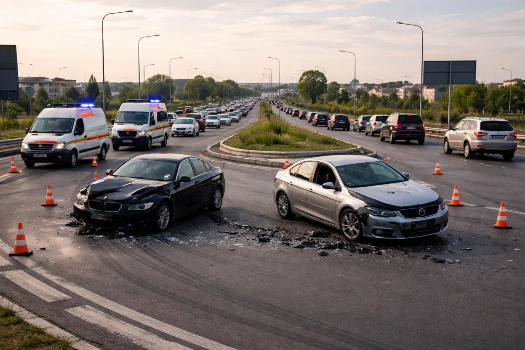 Accident pe DN1 la ieșirea din Ploiești: traficul îngreunat în zona giratoriului cu DJ155